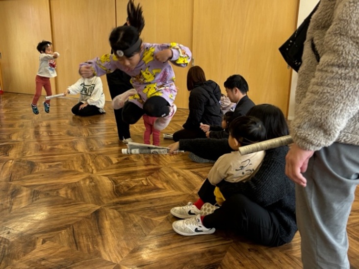 保護者アンケートからは、「忍者になりきって楽しみながら新聞遊びができ、とても楽しかった」など好評を頂きました。