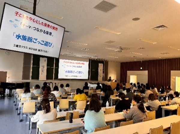 実践発表では、保育者による計画的な環境づくりの工夫や、子ども一人ひとりの思いや発見を大切にする取組みが紹介されました。