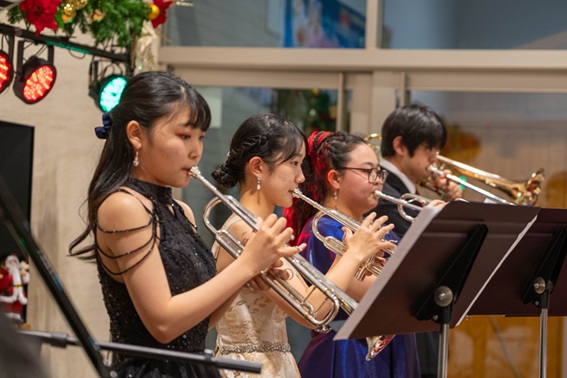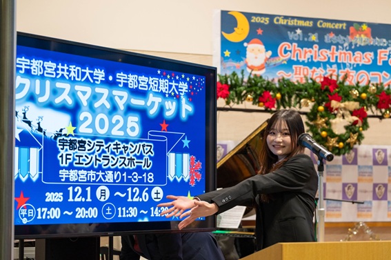 12月3日(水)のクリスマスコンサートでは、「クリスマス・ファンタジー」をテーマに、宇都宮短期大学音楽科の学生によるクリスマスソングの生演奏が行われました。