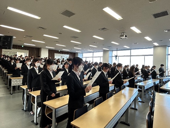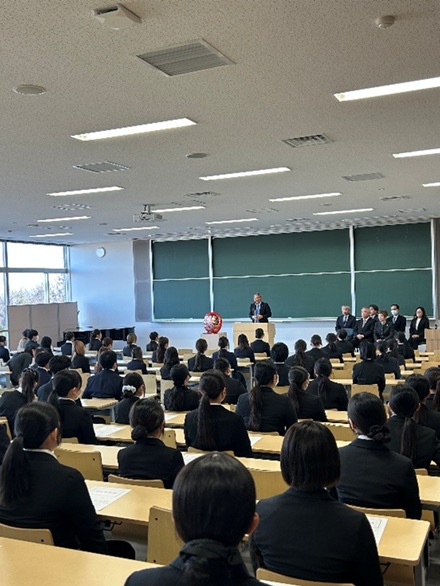学生たちは真剣な表情で耳を傾け、決意を新たにしました。学生一人ひとりにとって新たなスタートへの励みとなることを願っています。