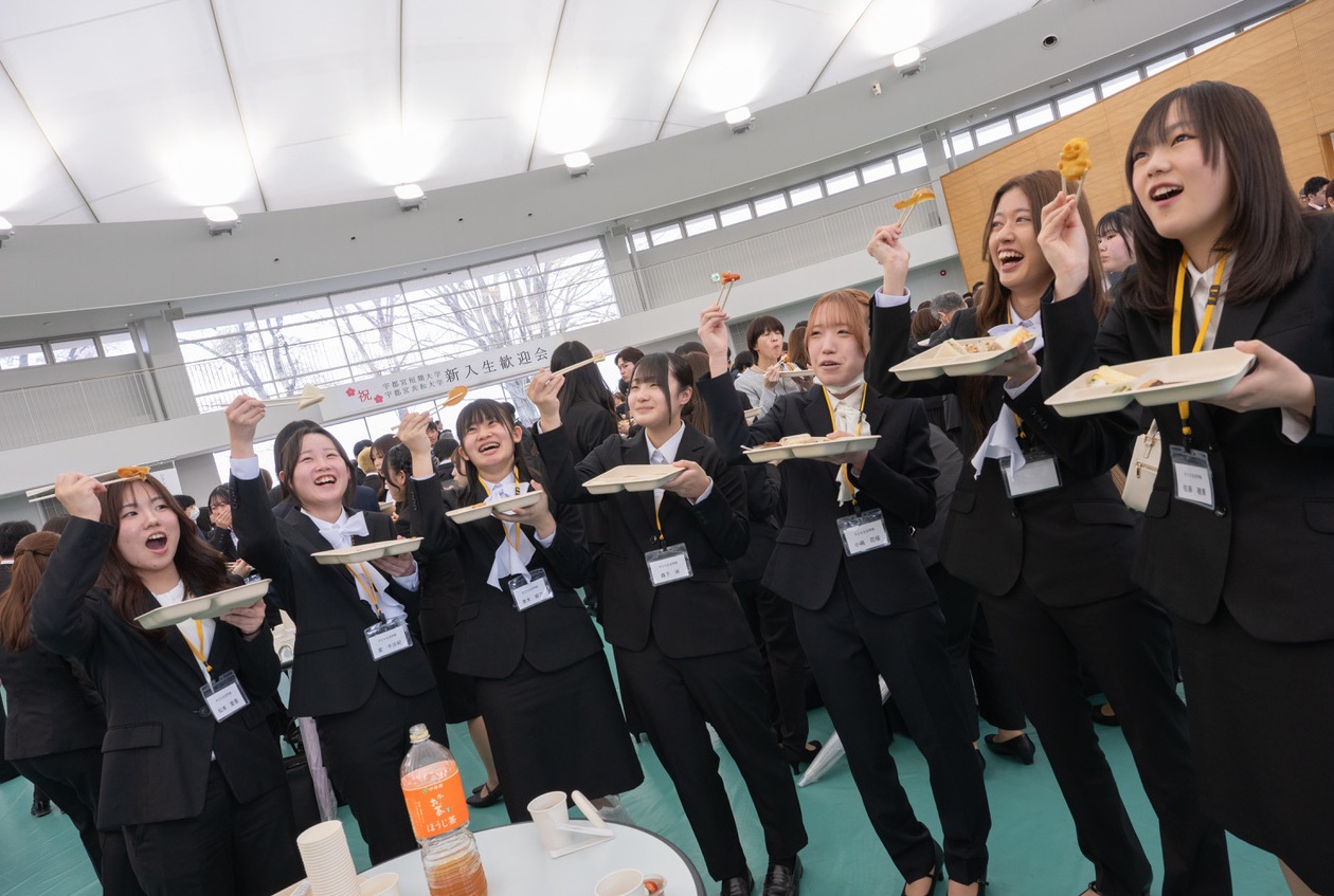 アリーナでは軽食がふるまわれ、ダンスサークルによる余興も披露されました。和やかな雰囲気の中で新入生歓迎会が行われ、新入生は先輩学生との交流を楽しみながら、大学生活の第一歩を踏み出しました。